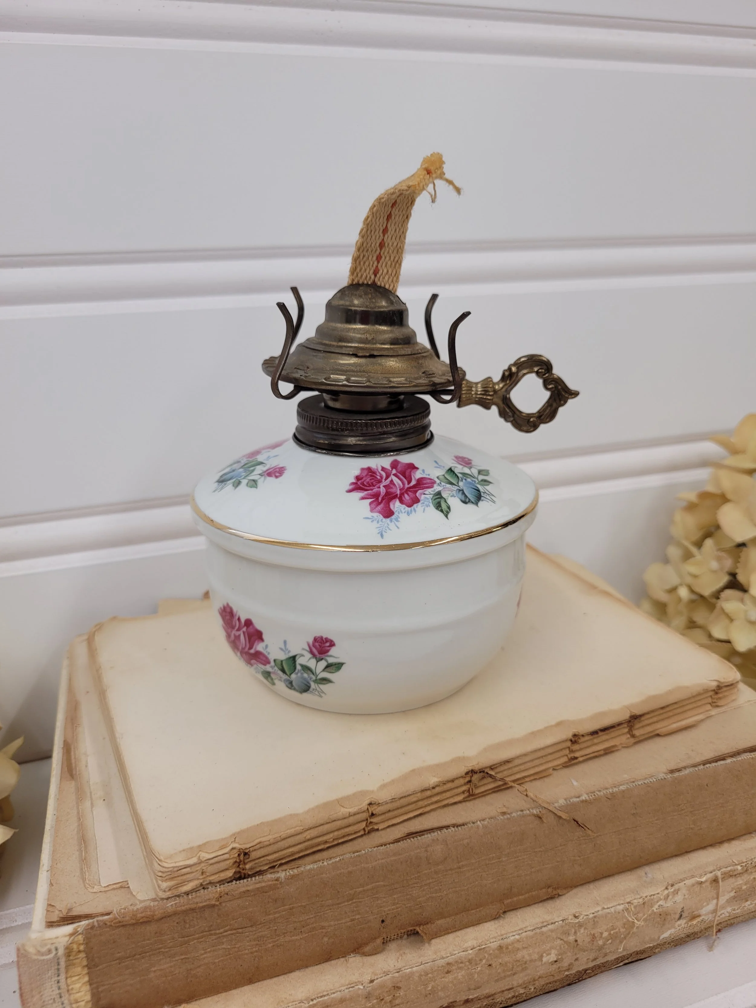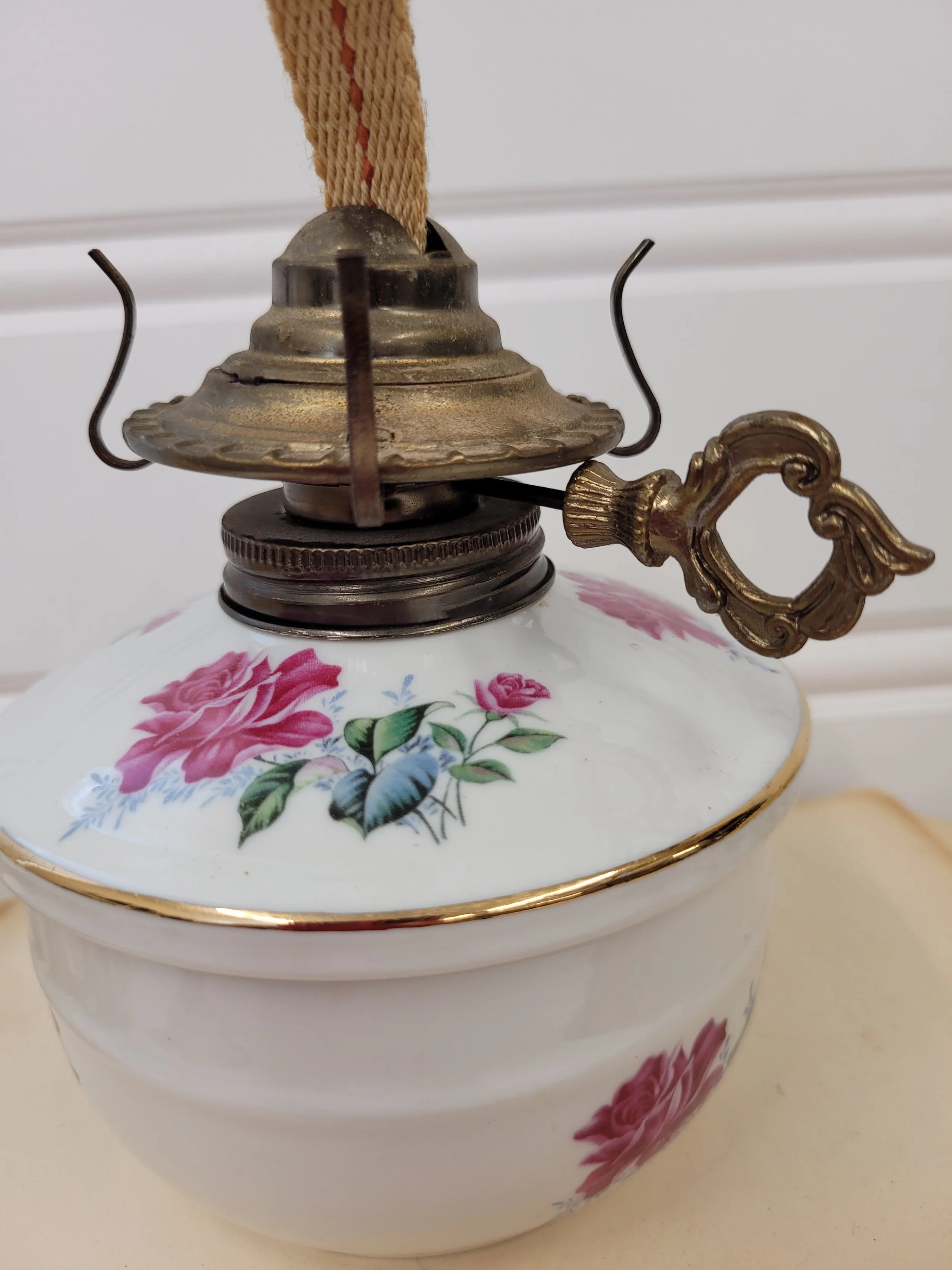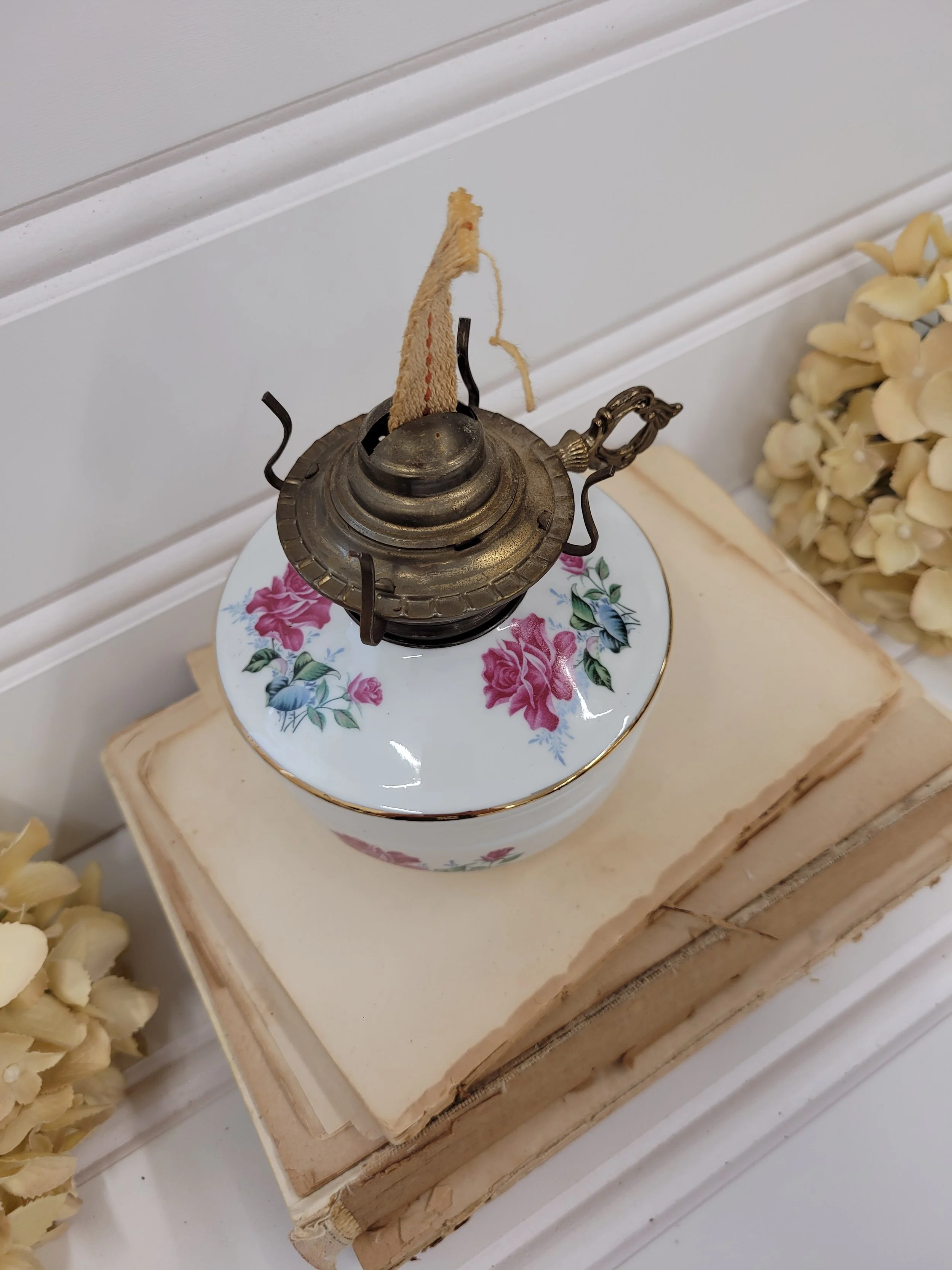 ceramic and brass floral oil lamp