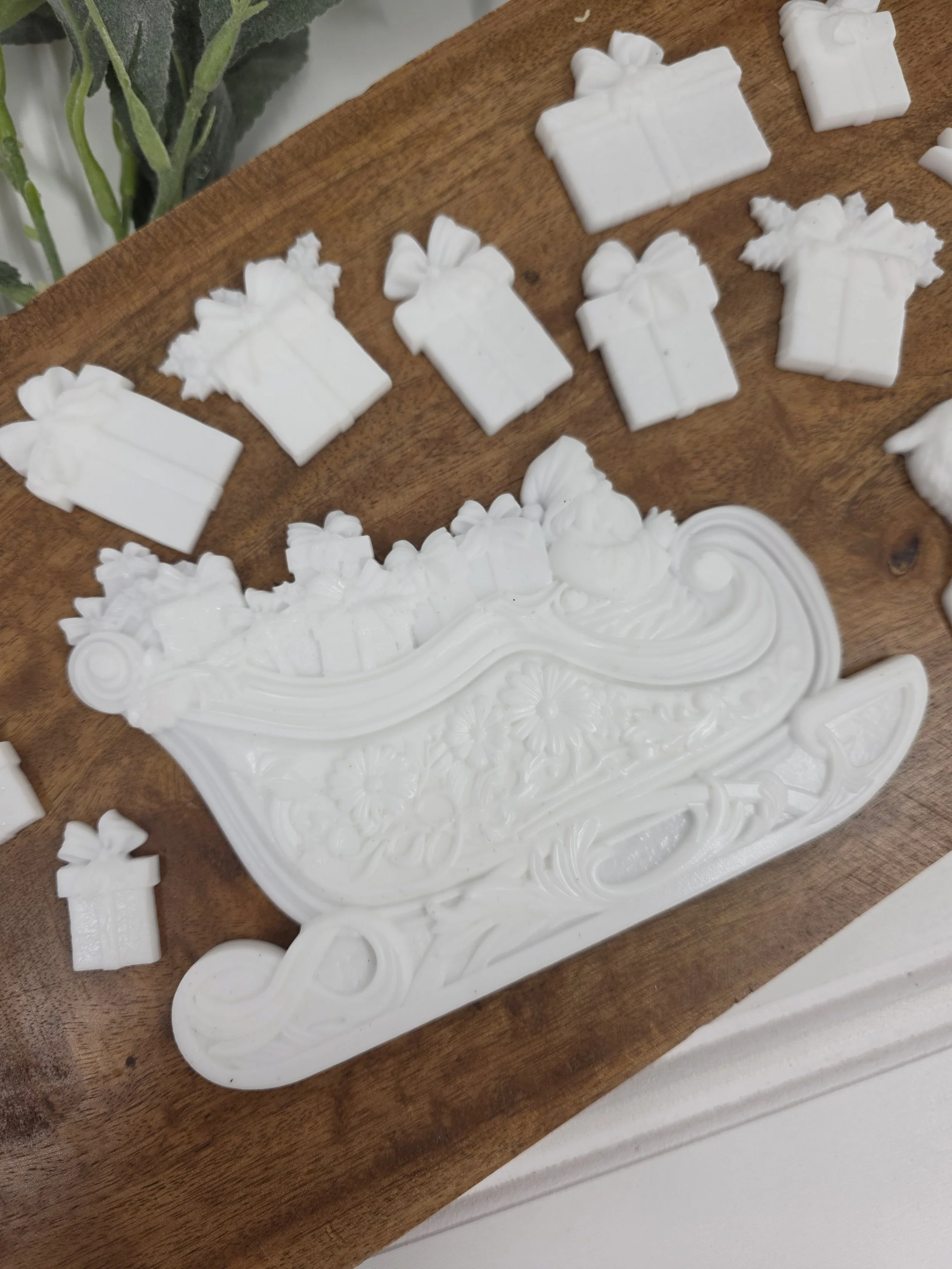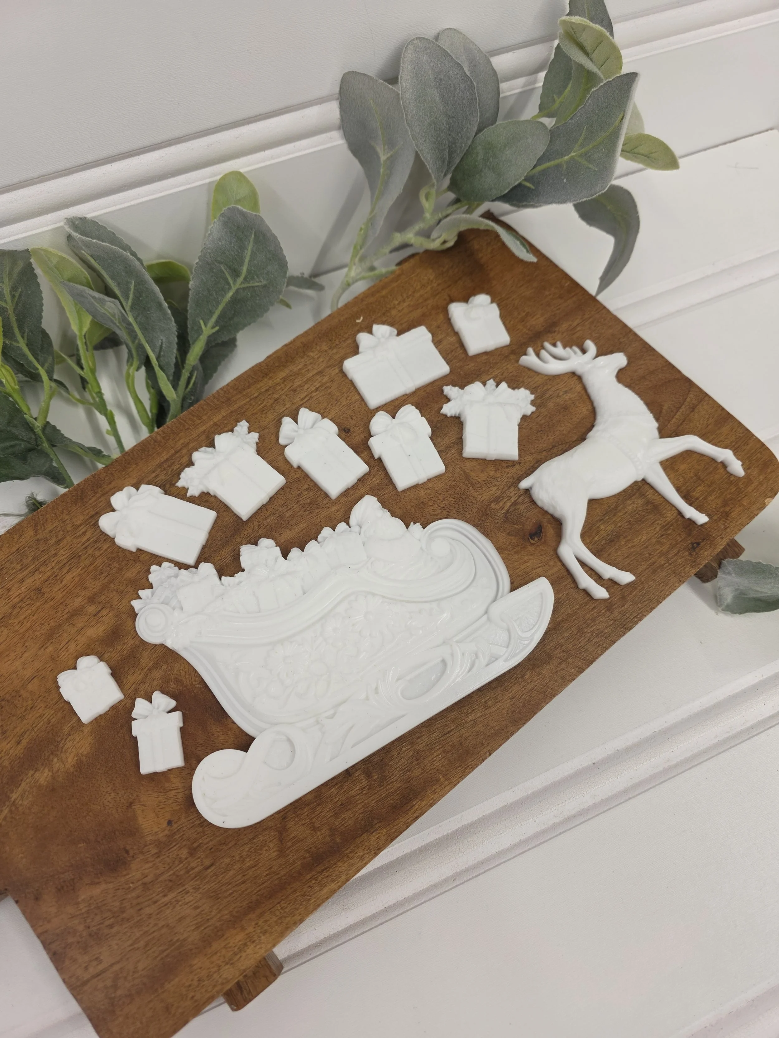 11 pieces of the IOD Santa’s Sleigh mold (this mold is no longer in production)